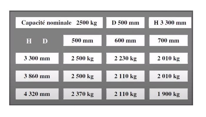 Le poid à vide comprend la batterie, le conducteur ne fait pas partis du chariot (année 2021)